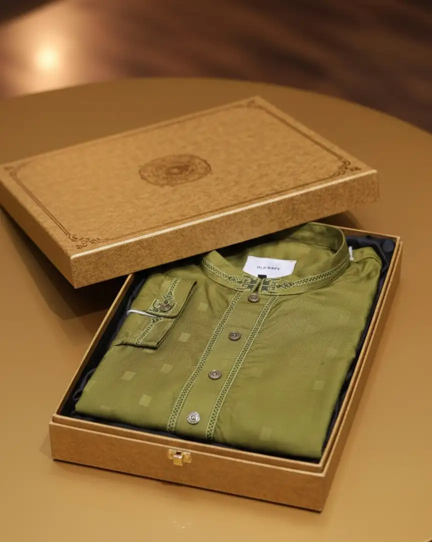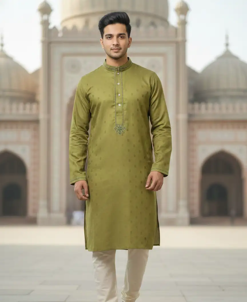 OLIVE COLOUR PANJABI WITH GOLDEN EMBROIDERY