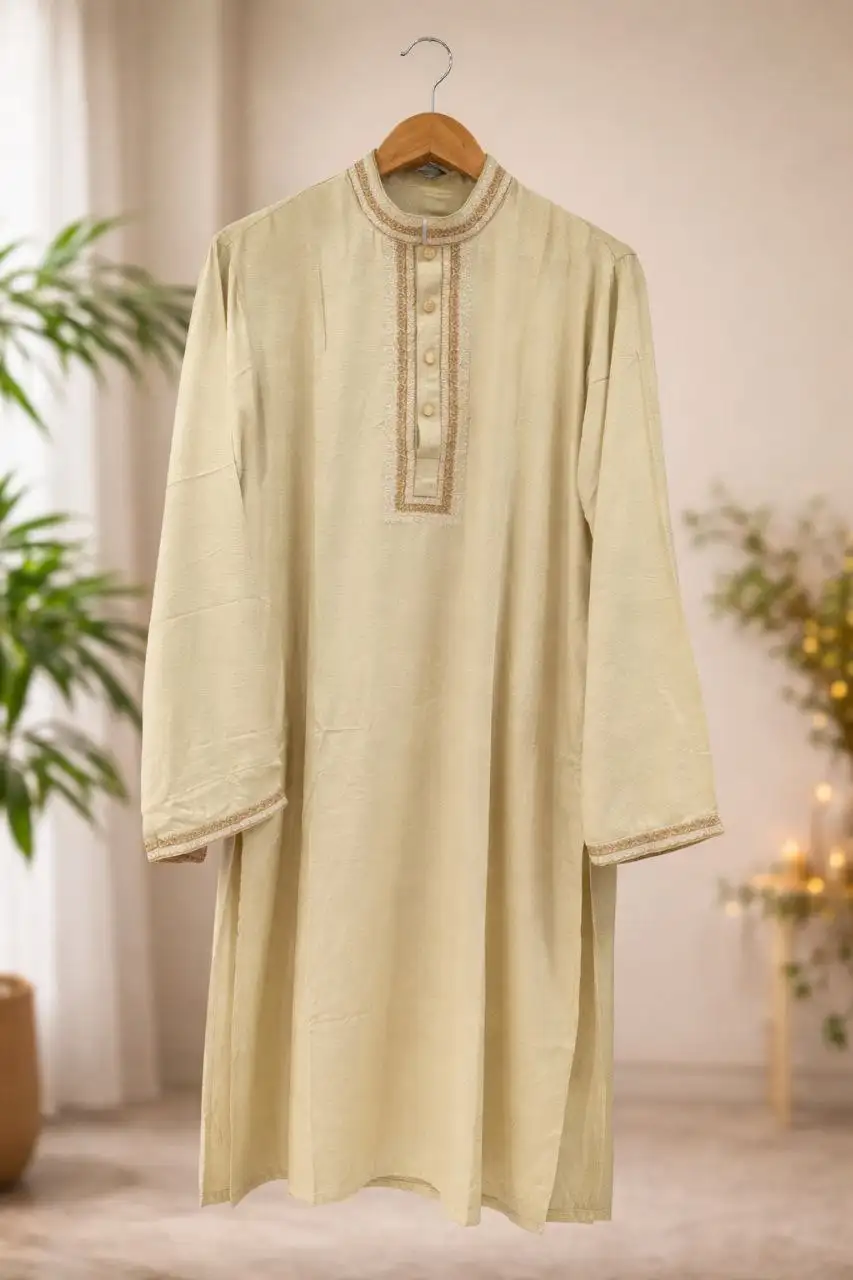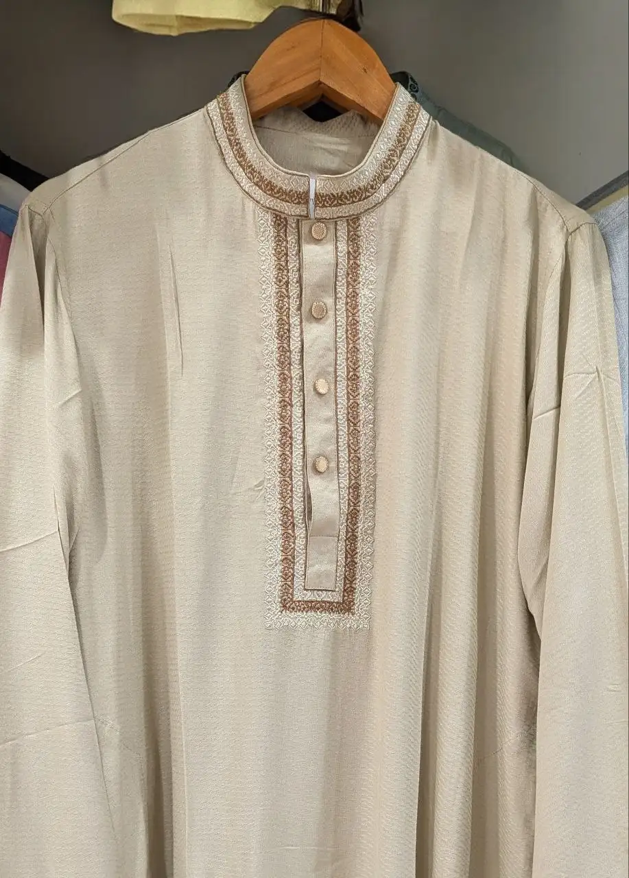 গোল্ডেন কালারের উপর দৃষ্টিনন্দন এমব্রয়ডারির কাজ